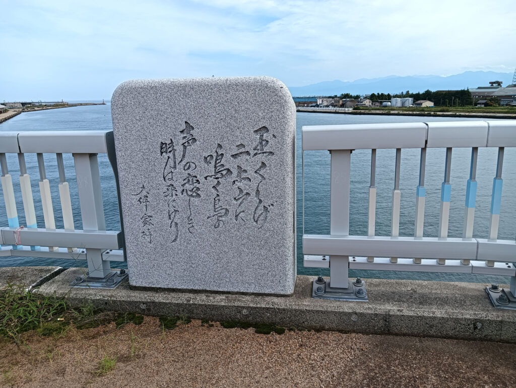 小矢部川万葉大橋に「大伴家持の歌が3首」石碑がある。万葉集で有名な家茂なぜ高岡?と思う人も多いのでは。