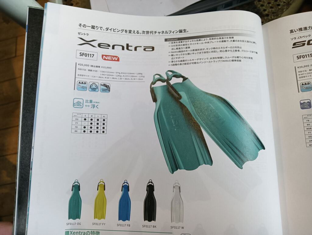 ちらっと中をのぞいてみると 新しいフィンが2種類発売(ともにゴムフィン)されるみたいだ。