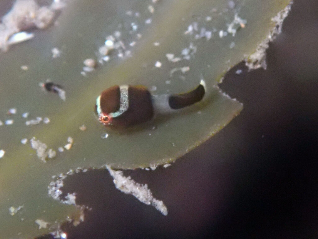 冬の嵐で海藻の「アラメ」が全滅してしまった。例年は、アラメの上を探すとダンゴウオが見るかるという流れであったが今年は、小さな茶色い海藻の上を探している。ようやく今年の初物を発見。