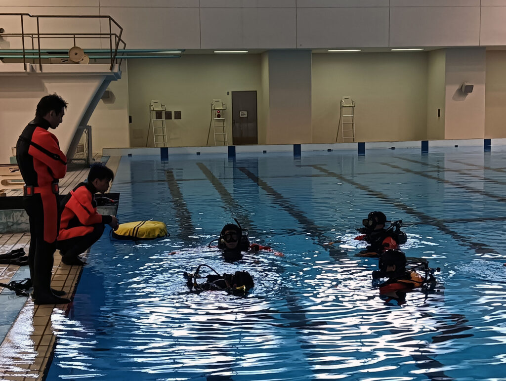 2日間の練習のテーマは、フルフェイスマスクと水中無線の取り扱いである。